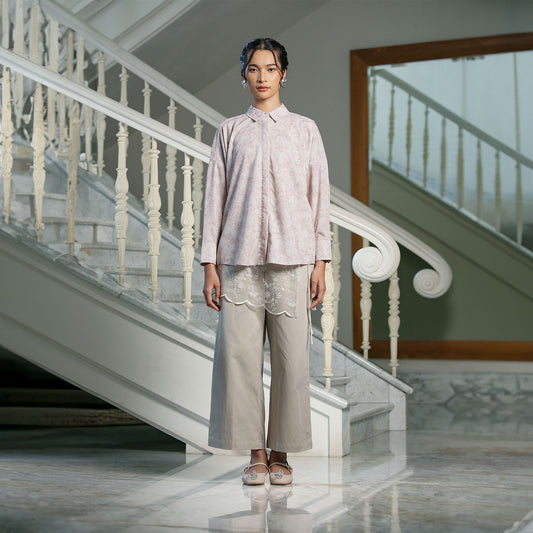 Laya Top - Kemeja Katun Bordir Two Tone Color