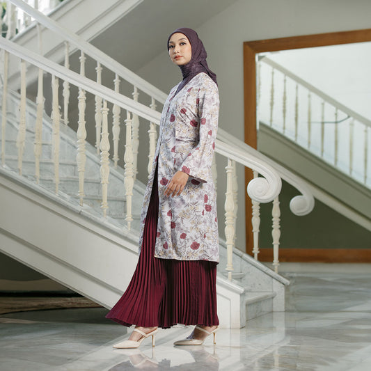 Jelita Red Tunic - Tunik Katun Motif Bunga V-Neck