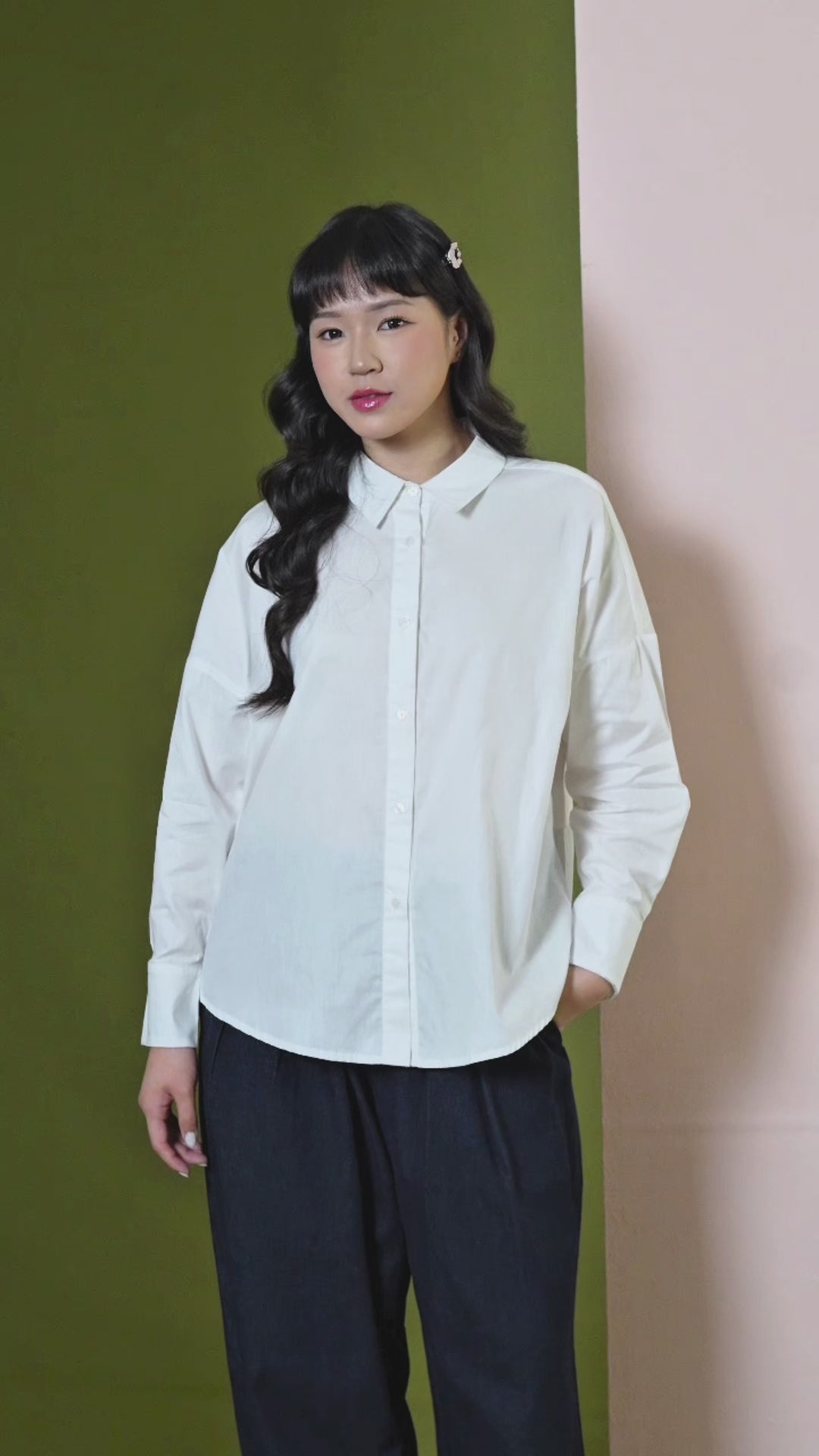 Vela Broken White - Kemeja Cotton Pleats Belakang