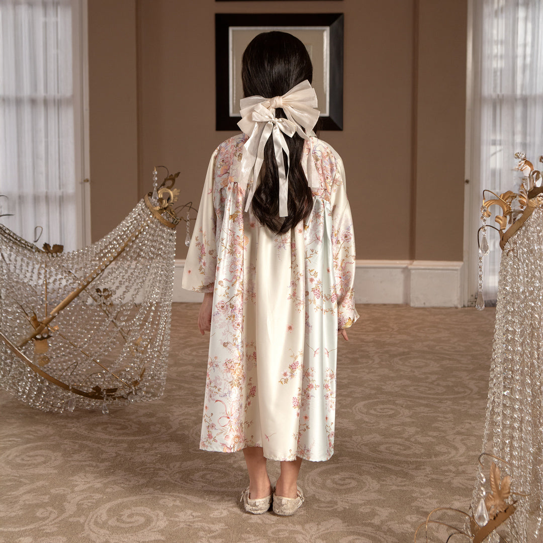 Detail Baju : Silhouette A line dengan kancing penuh, Hidden Button, Detail kerut pada bagian belakang,lengan karet, Detail flower bordir depan