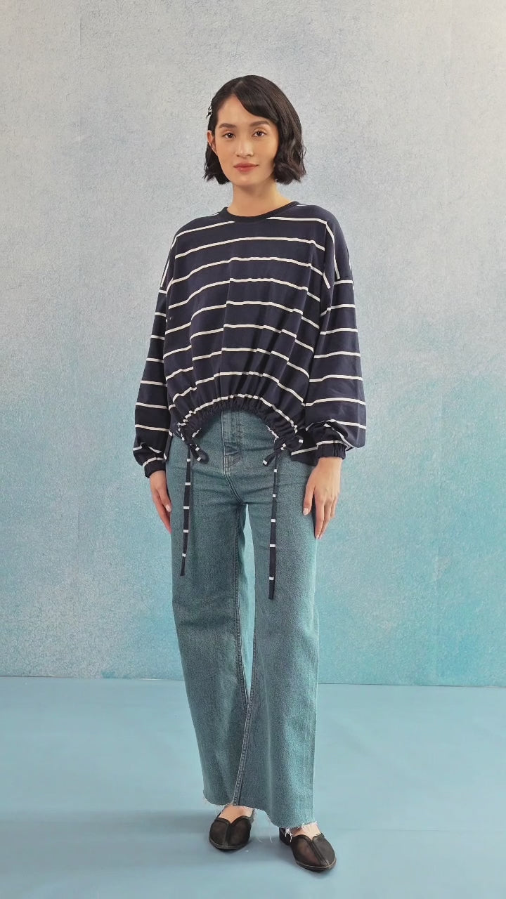 Detail: Kerah Crewneck, Bawahan kerut dengan tali adjustable