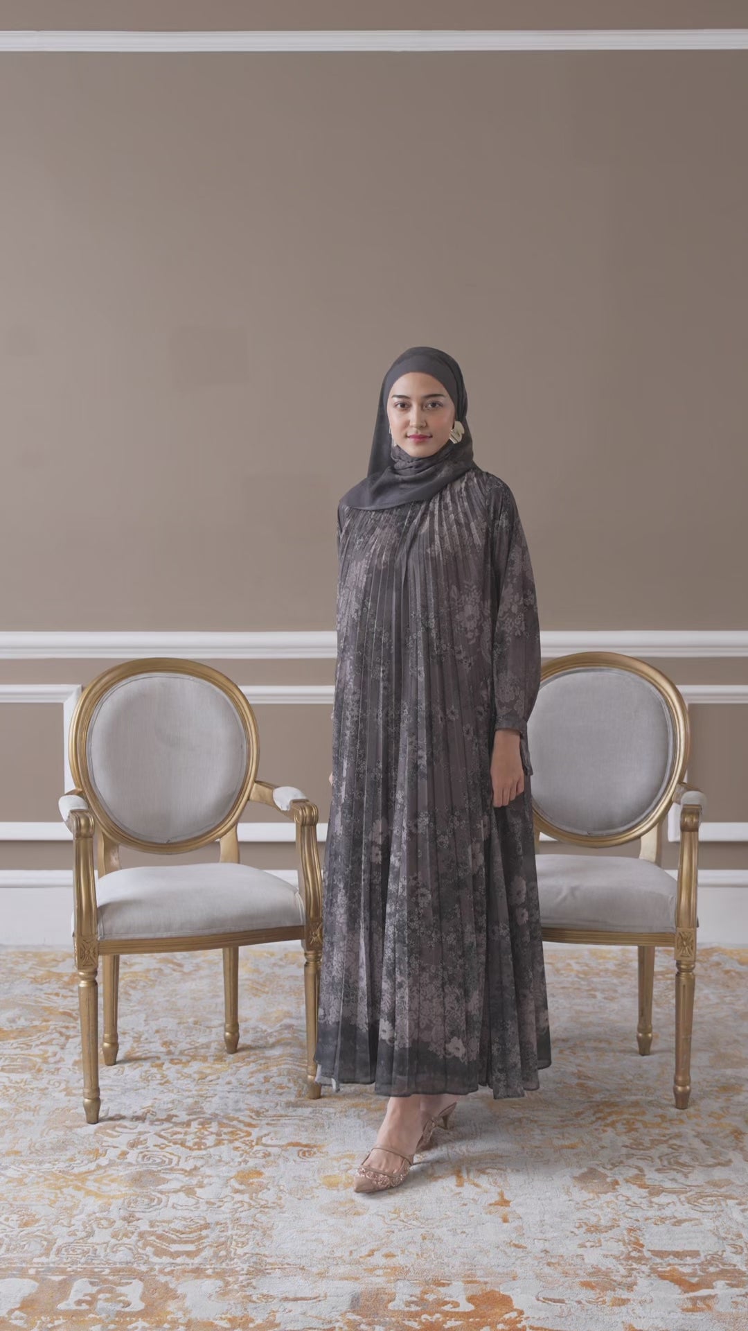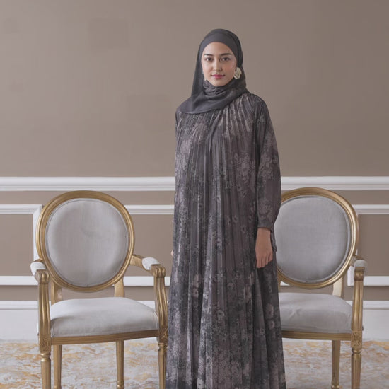 Detail Baju : Silhouette A line, Detail pleats bagian depan, kerah bulat, detail tali adjustable bagian lengan