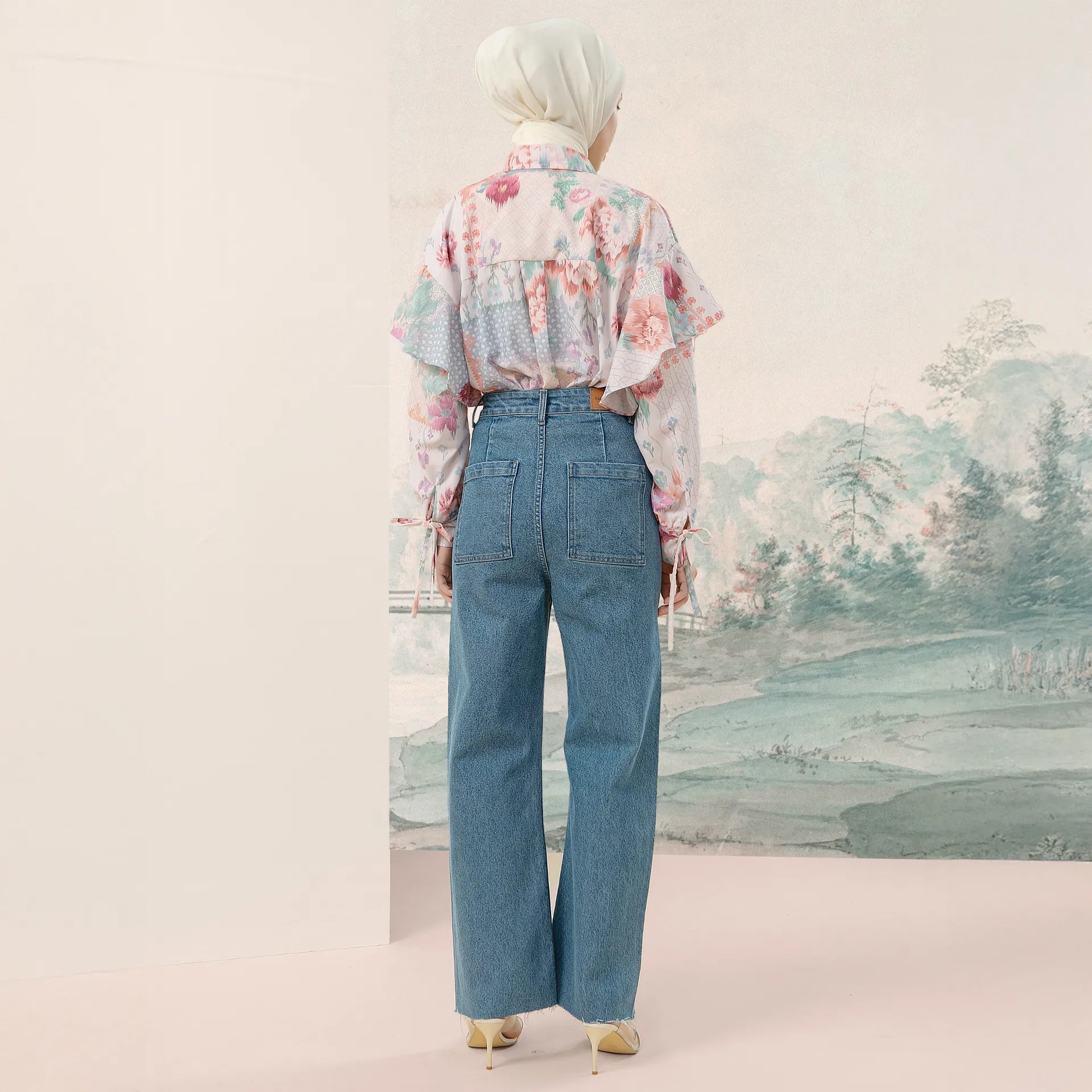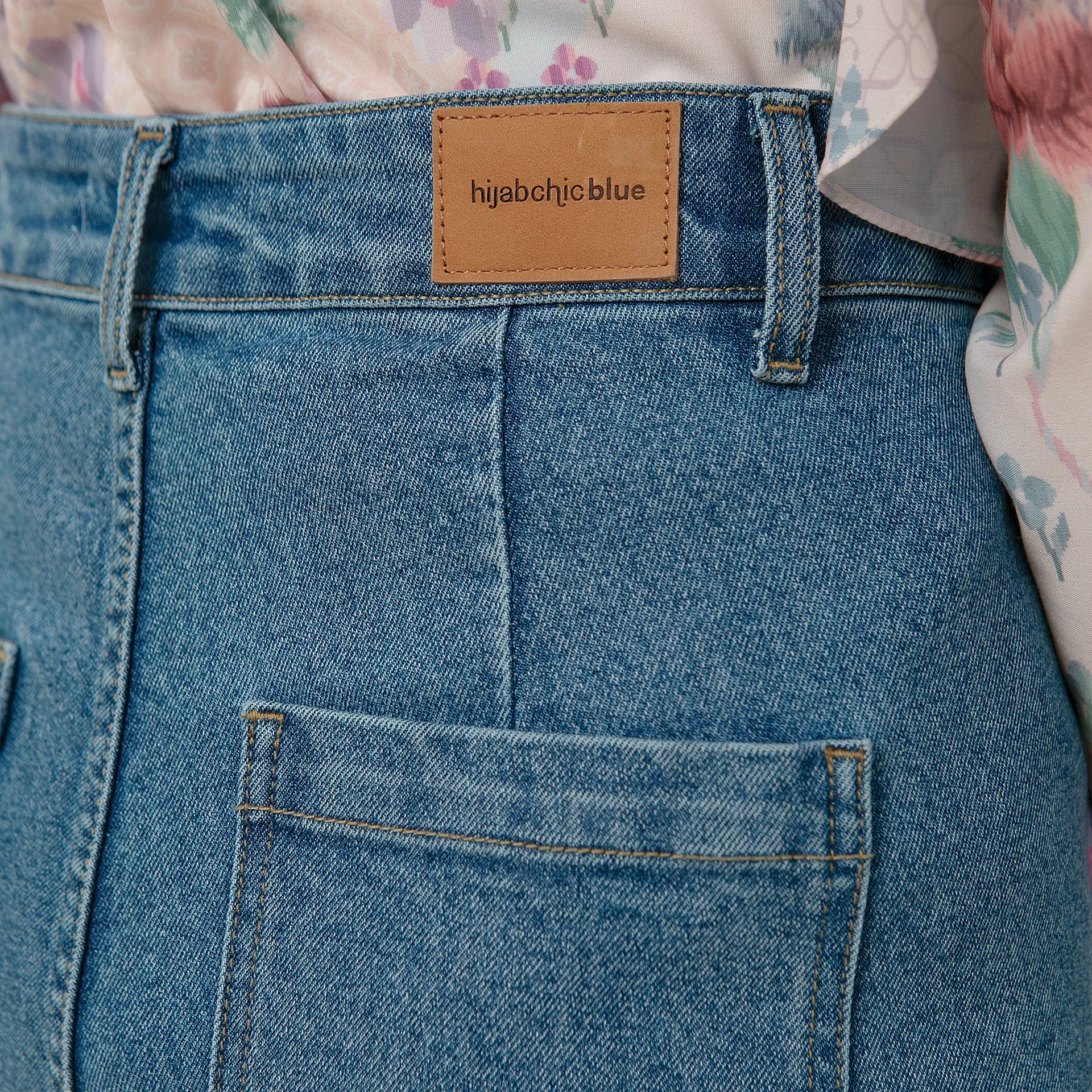 Detail Produk/ Product Detail: Ban Pinggang dengan kolom belt, Tanpa jahitan samping, Saku Belakang, Hem unfinished