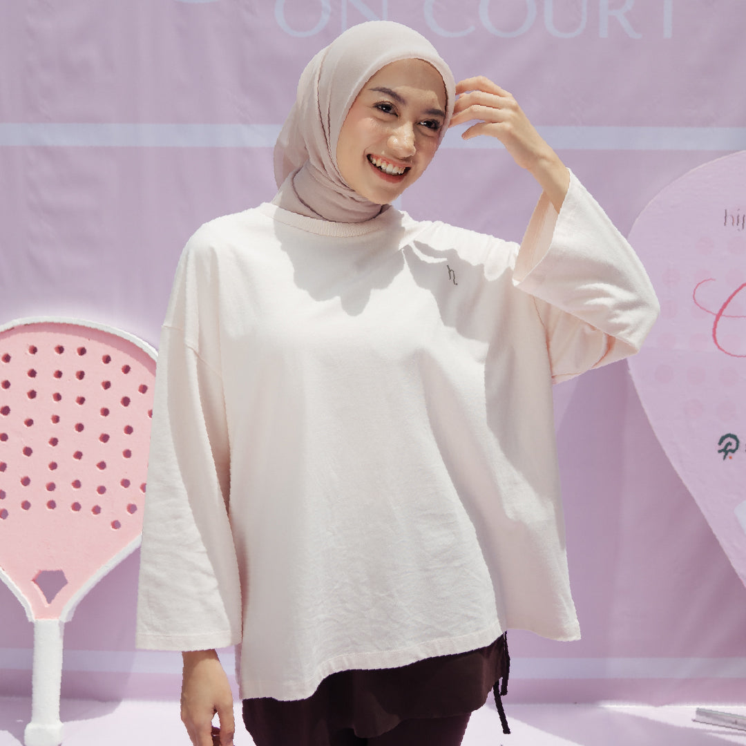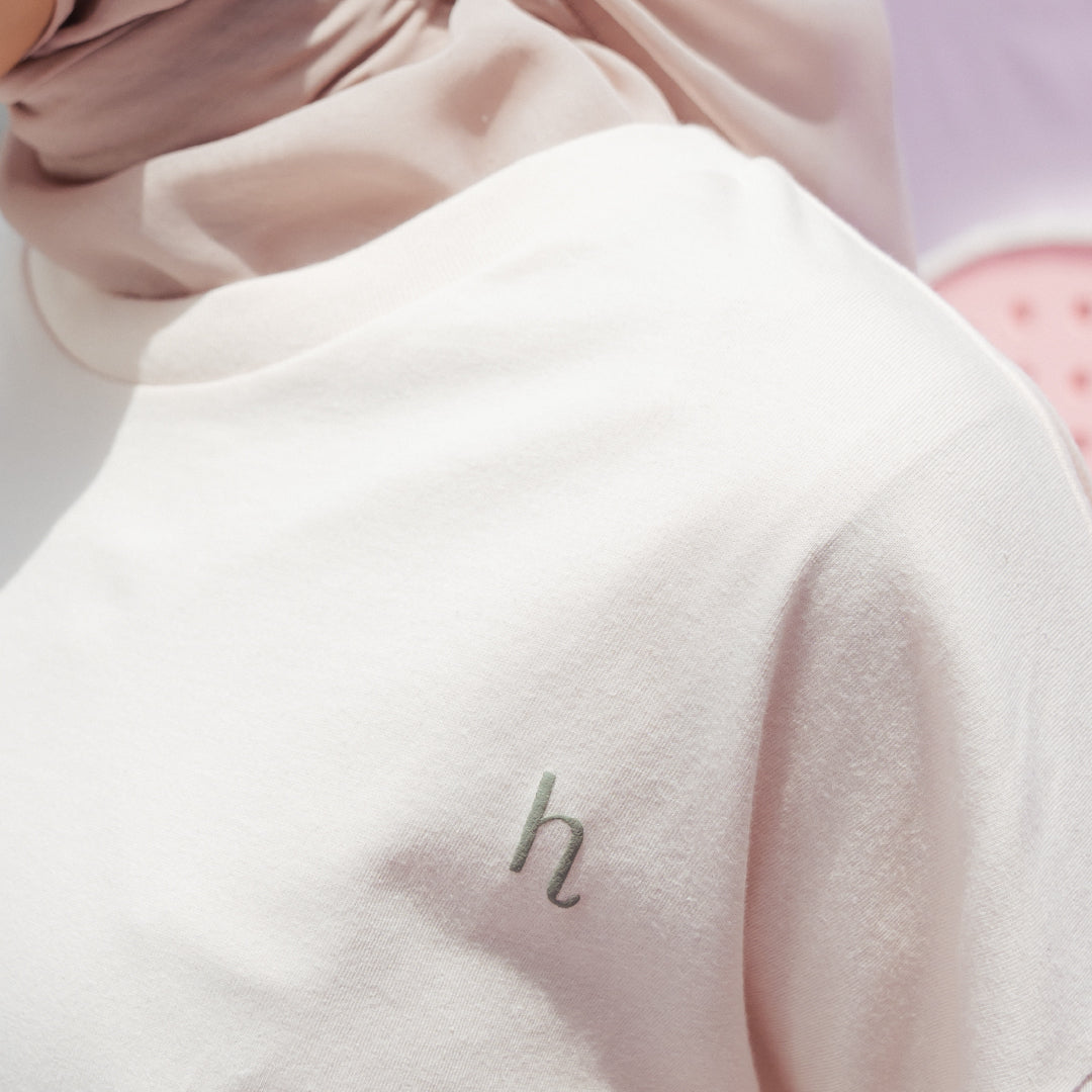 Detail Baju: Rib Kerah, Lengan Panjang, Sablon Logo