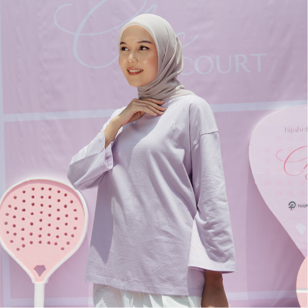 Detail Baju: Rib Kerah, Lengan Panjang, Sablon Logo