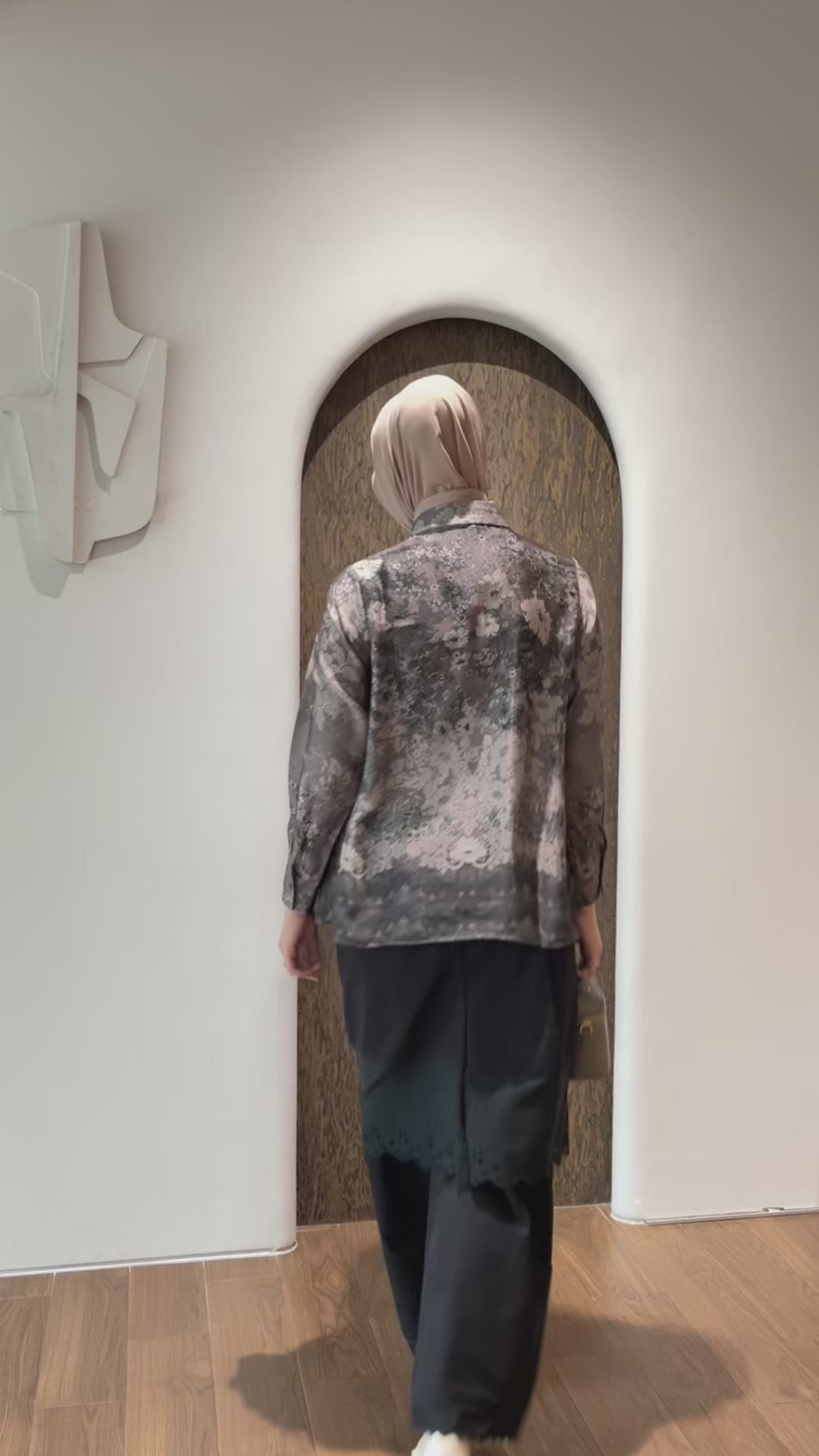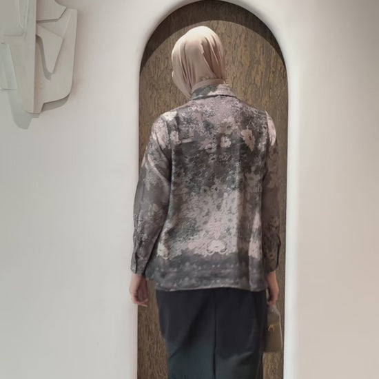 Detail Baju : Silhouette potongan lurus lengan panjang, Bukaan kancing penuh di bagian depan, Exclusive flower pattern
