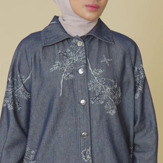 Detail Baju: Flower Jacquard denim, special button, double layer yoke, kerah jacket, lengan manset